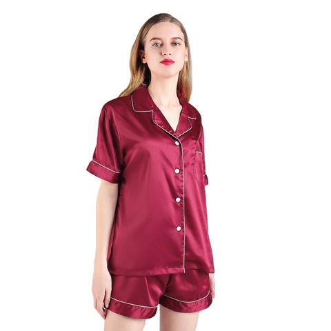 FUNGTEXTILE 3034 섹시한 투피스 여성 잠옷 세트 새틴 원단 탄력 있는 허리밴드 반팔 통기성 및 빠른 건조 캐주얼 파자마
