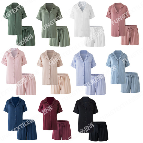 Fung 8001 NEW 95% 비스코스 및 스판덱스 모달 짧은 파자마 세트 짧은 파자마 세트 신부 웨딩 파자마 세트 사용자 정의 PJ